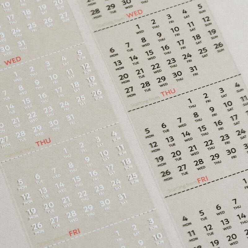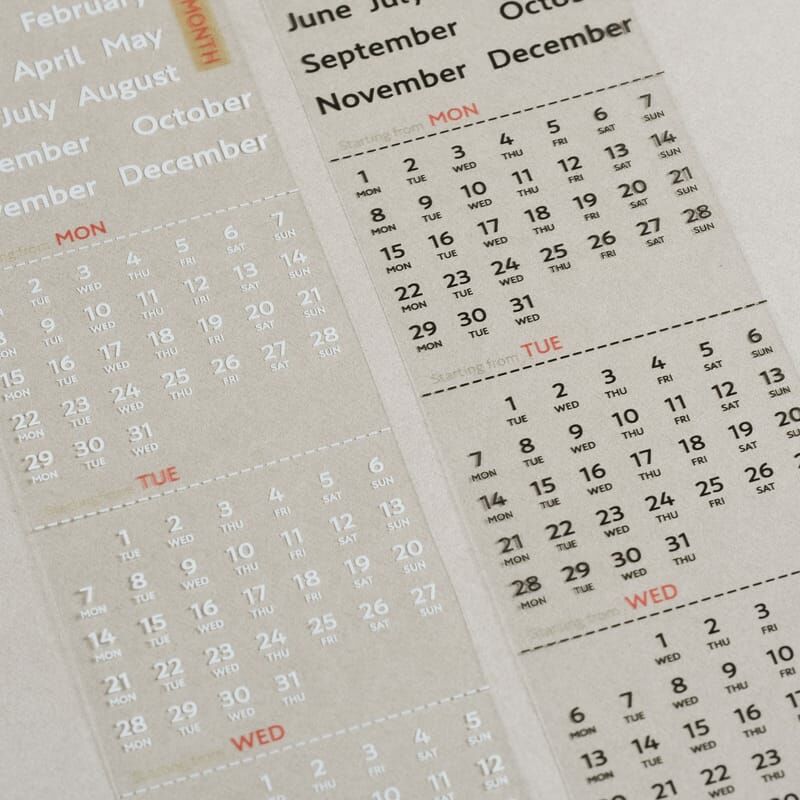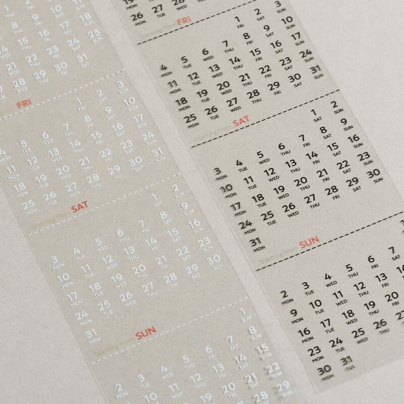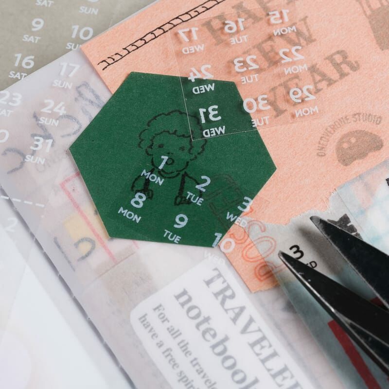 不論哪一個年度月份,都可以找到需要的月曆區塊,可以剪開製作小月曆(月曆部分約5X6CM),或是剪開當單日付使用(約0.5CM)
