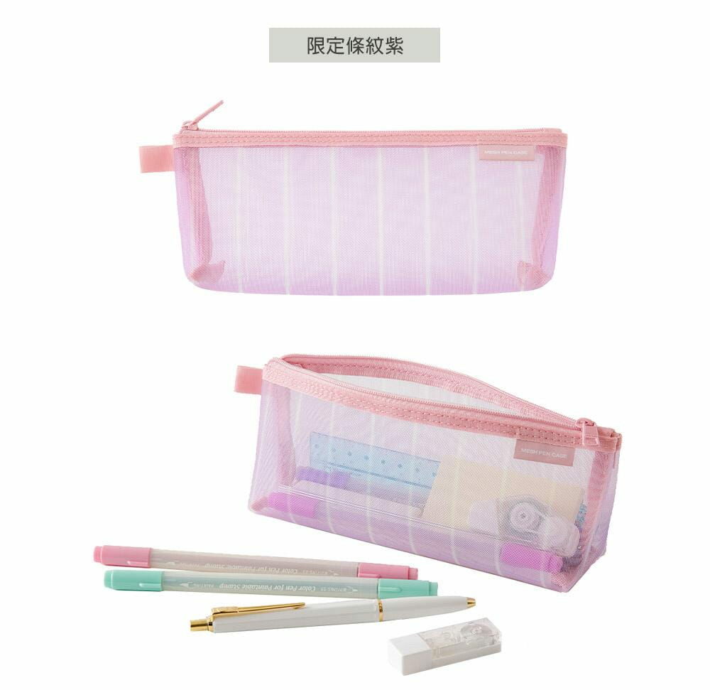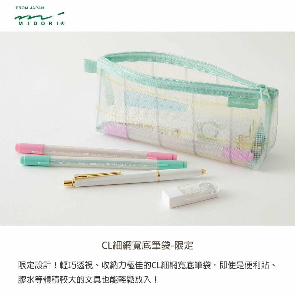 格子綠_寬底 細網筆袋 收納袋|日本MIDORI