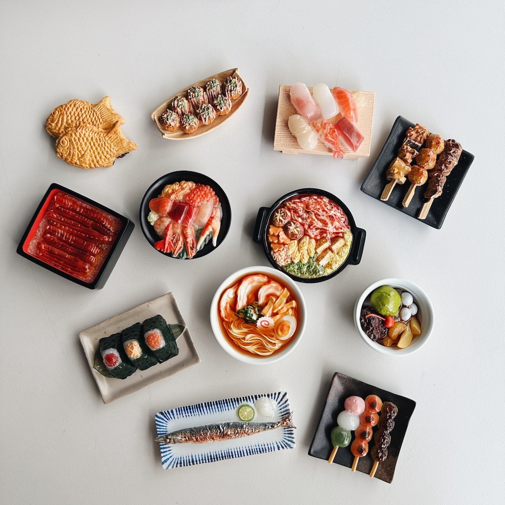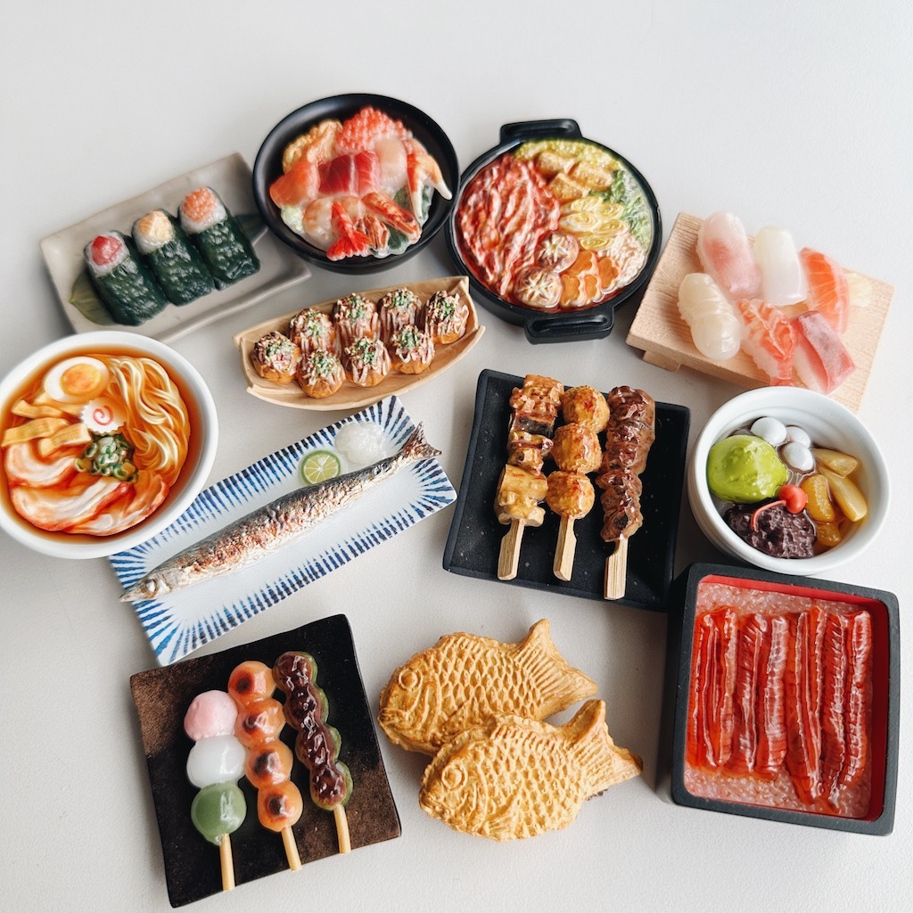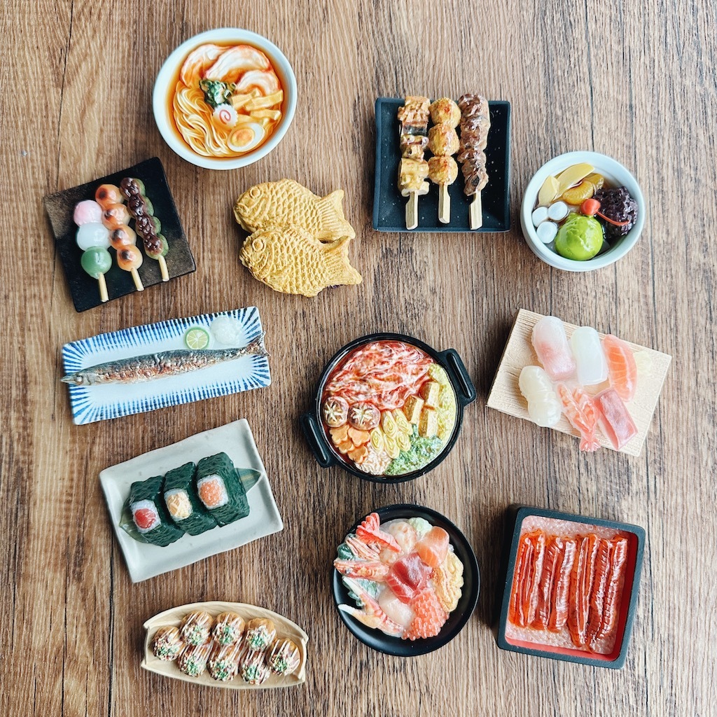有拉麵、烤雞肉串、壽司、飯糰、秋刀魚、鰻魚飯、章魚燒、壽喜燒、海鮮蓋飯、團子、鯛魚燒和餡蜜餡蜜等 12 種變化!