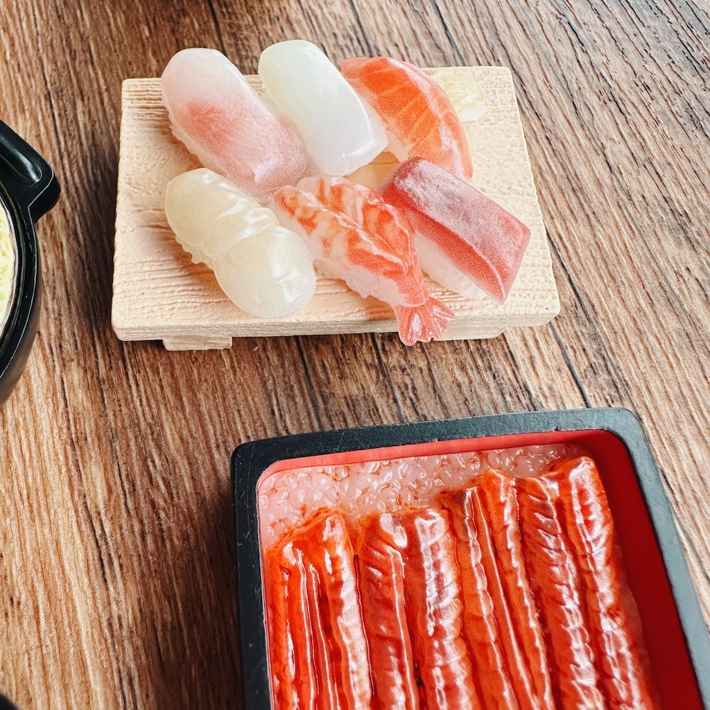 有拉麵、烤雞肉串、壽司、飯糰、秋刀魚、鰻魚飯、章魚燒、壽喜燒、海鮮蓋飯、團子、鯛魚燒和餡蜜餡蜜等 12 種變化!