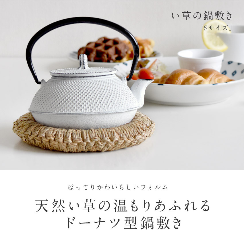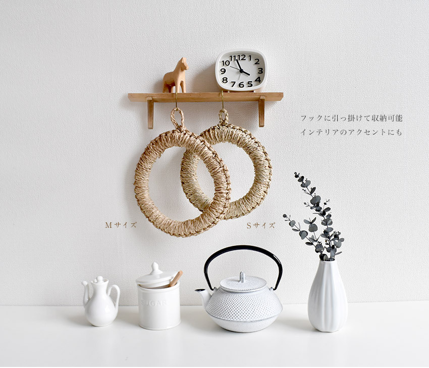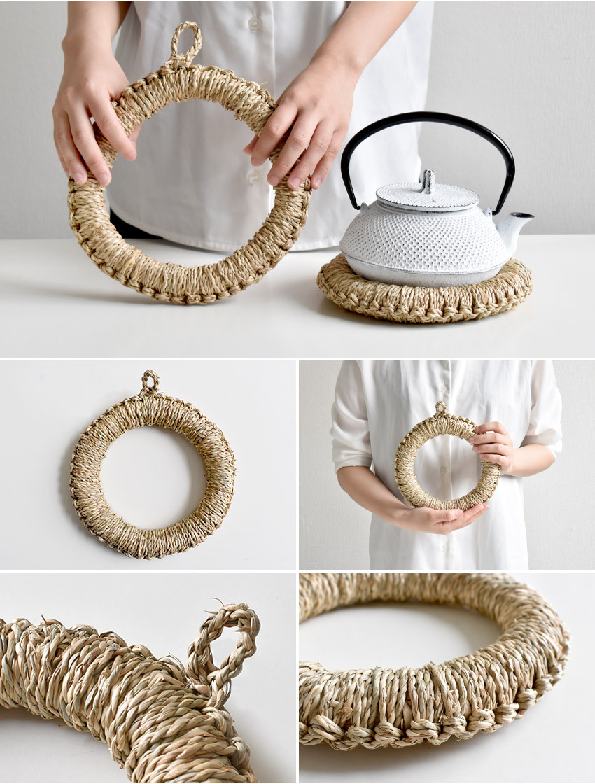甜甜圈形狀的鍋墊非常適合陶器鍋和平底鍋,即使將陶罐等重物放在上面,天然材料的適度彈性也可以穩定地放置。
