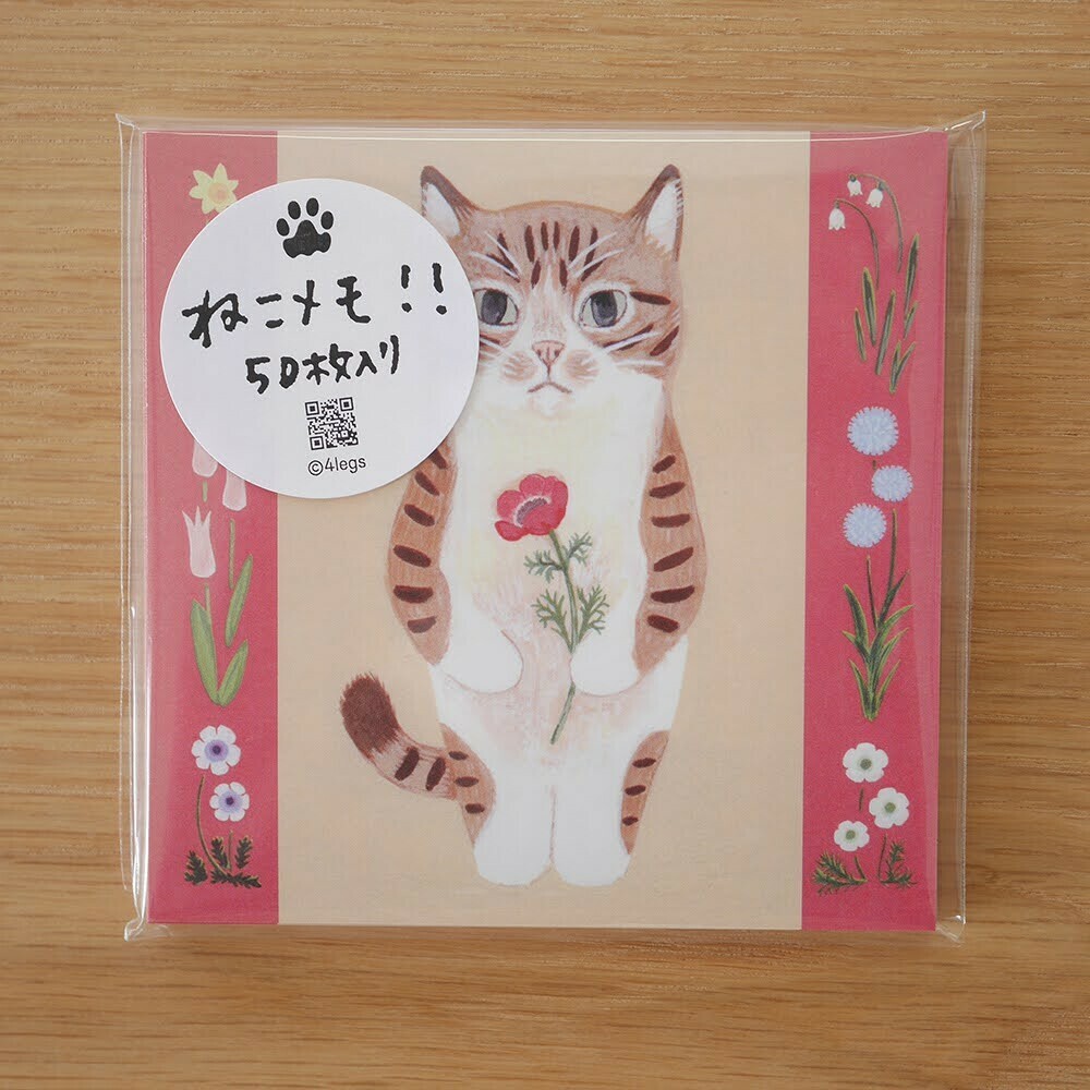 棕虎斑 插畫便條紙 50枚|日本 4legs