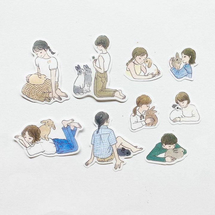 兔子與女孩 54枚 和紙貼紙包 森山標子|日本 PAPIER PLATZ
