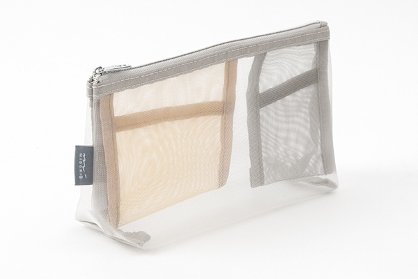灰色 多功能細網寬底筆袋 收納袋 |日本MIDORI