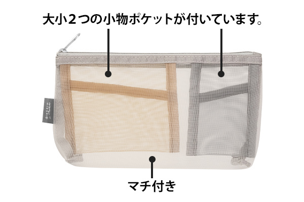 大受歡迎的網眼分隔收納袋推出全新的底部加寬款式。這使用質地輕盈的細網素材製作而成,不僅攜帶無負擔,還能一眼掌握袋內的物件。