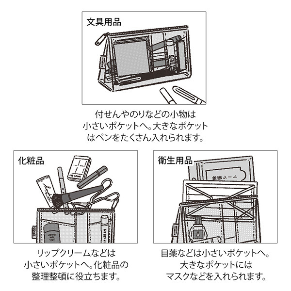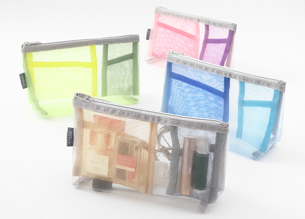 大受歡迎的網眼分隔收納袋推出全新的底部加寬款式。這使用質地輕盈的細網素材製作而成,不僅攜帶無負擔,還能一眼掌握袋內的物件。