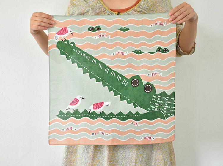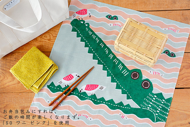 愛刷牙的鱷魚 粉色 50cm茶巾 風呂敷|日本kata kata