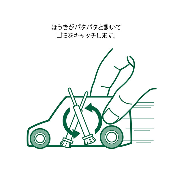 迷你的小車子外型,只要利用手指輕輕轉動,車內的小小掃把便跟運動,掃集桌面上橡皮擦屑等的小垃圾。