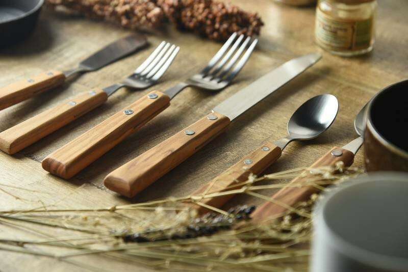優質的不銹鋼餐具,搭配天然木手柄