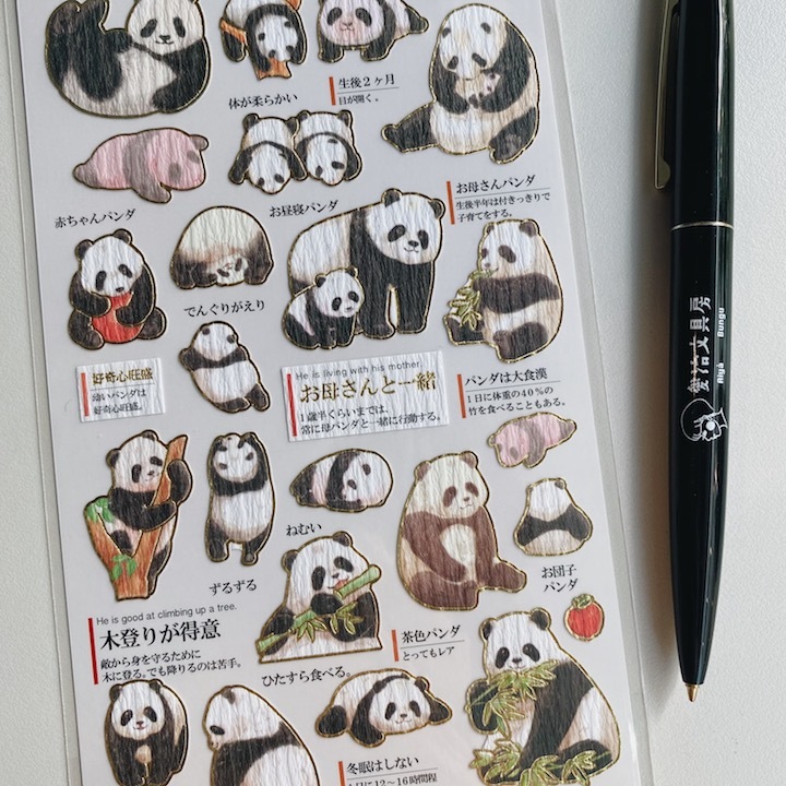 熊貓 大人的圖鑑 金箔壓印手帳貼紙|日本Kamio