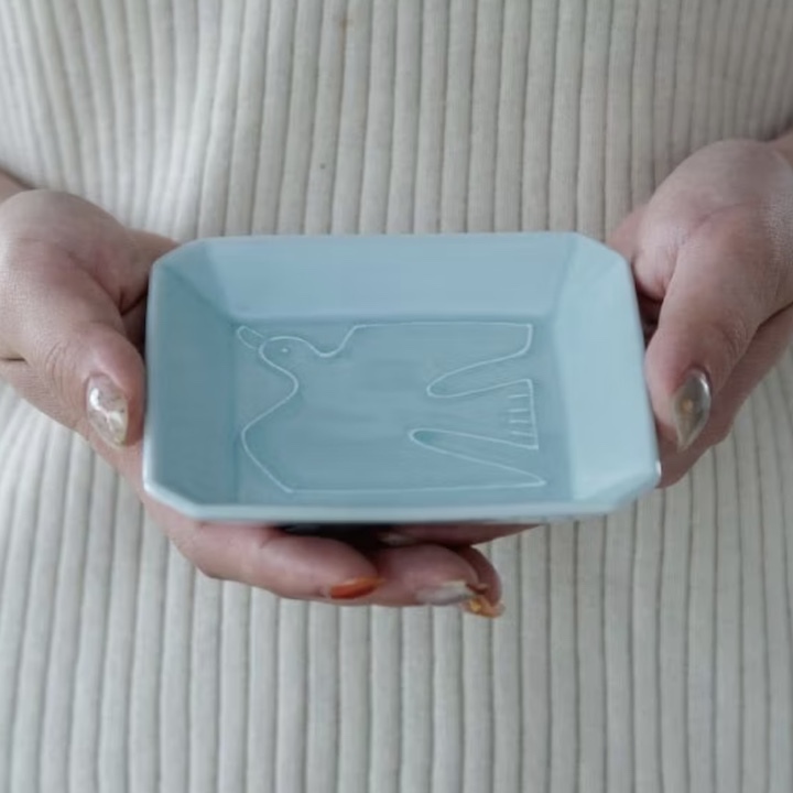 白色顏料繪製的鳥兒營造出清新的氛圍,
