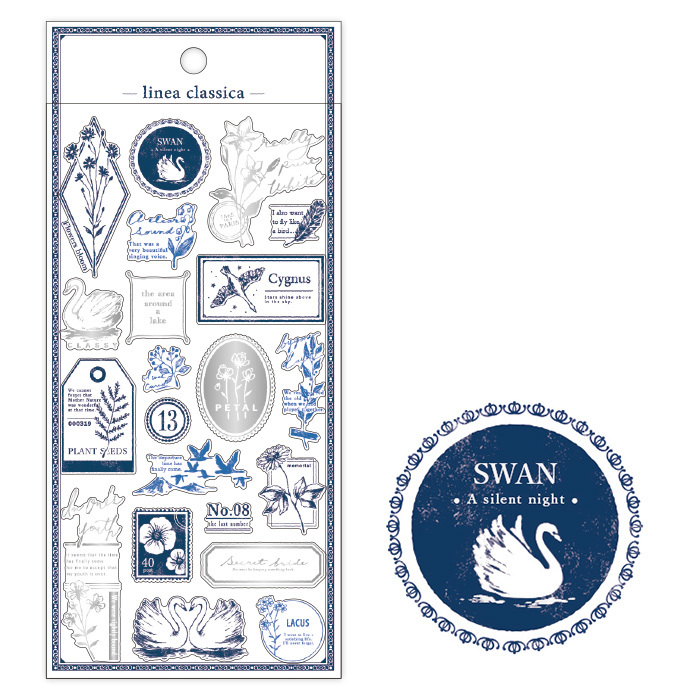 天鵝 箔押 PET透明貼紙 經典線條系列|日本Mind Wave