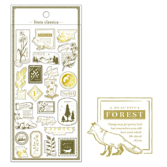 狐狸 箔押 PET透明貼紙 經典線條系列|日本Mind Wave