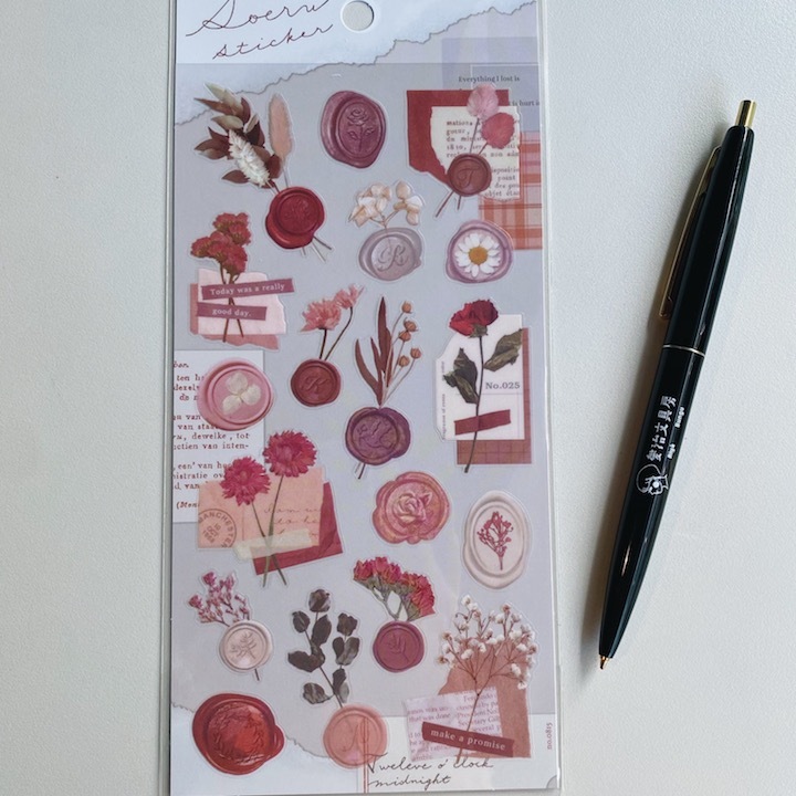 酒紅 植物封蠟貼紙 啞光透明PET|日本Mind Wave