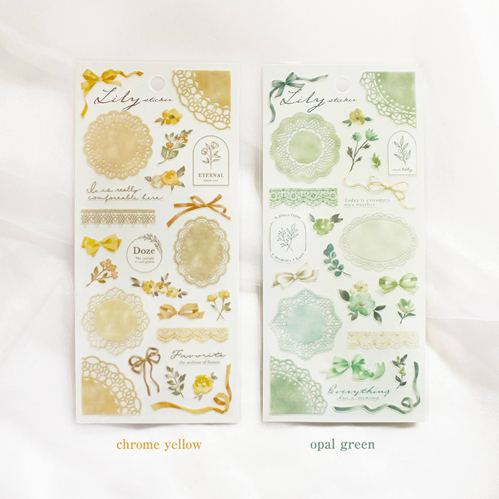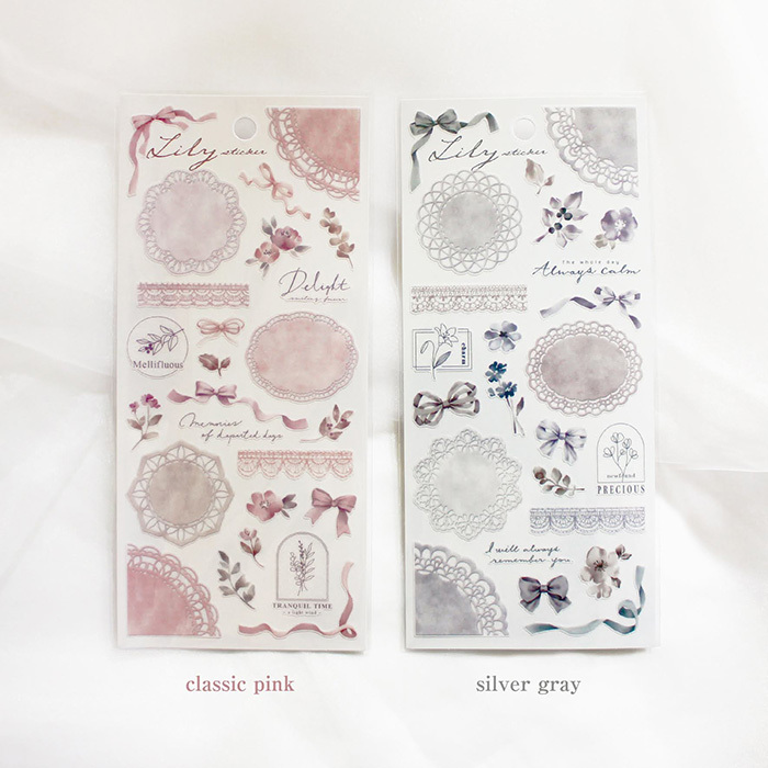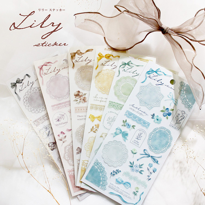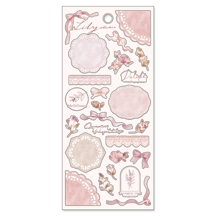 以蕾絲和緞帶為主題的貼紙,散發出優雅的氣息。