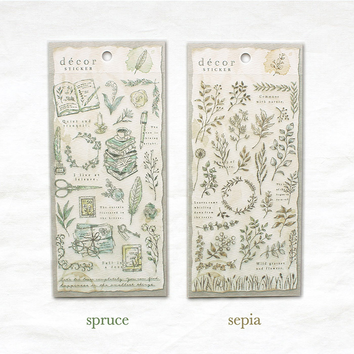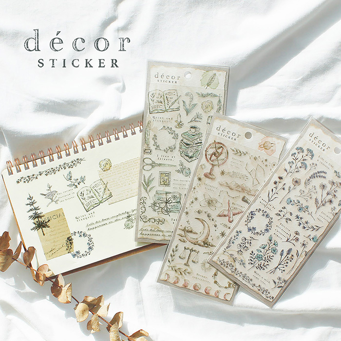 綠色文具 古典插畫系列 透明PET貼紙|日本Mind Wave