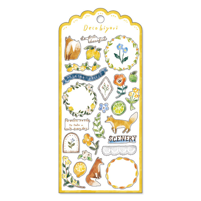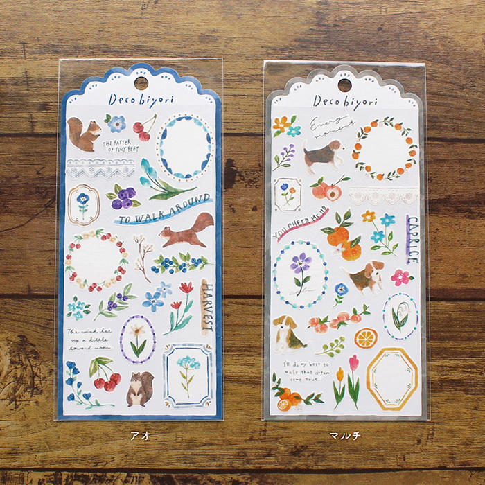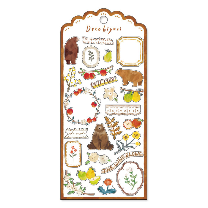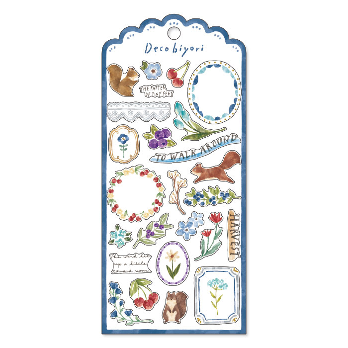 以森林動物和花卉為主題的貼紙,鮮明色彩,具有童話繪本的風格