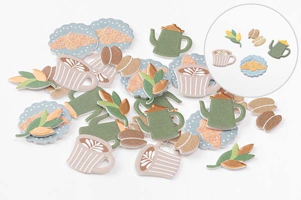 本系列一次推出《音樂》、《慶典》、《午茶點心》與《文具》四種主題,每一張貼紙皆出自於手工的細心製作。