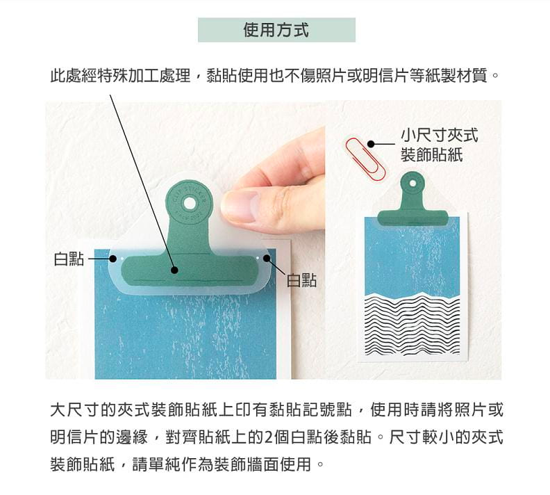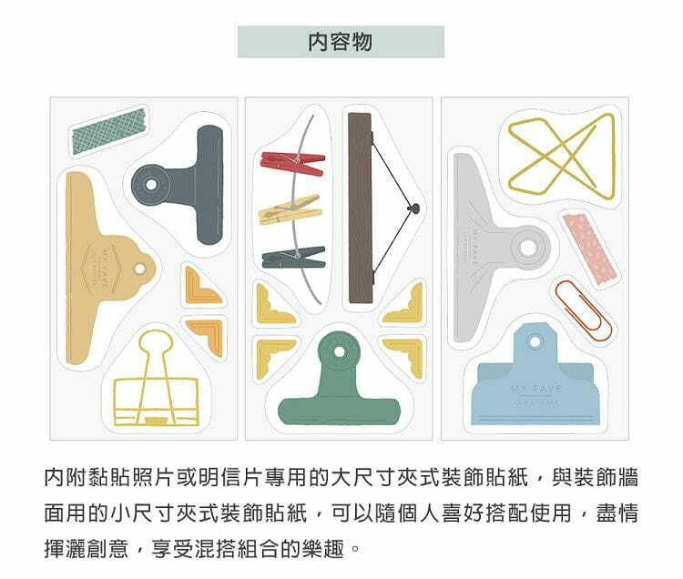 不傷牆面,可隨意黏貼照片或明信片的「夾式裝飾貼紙」