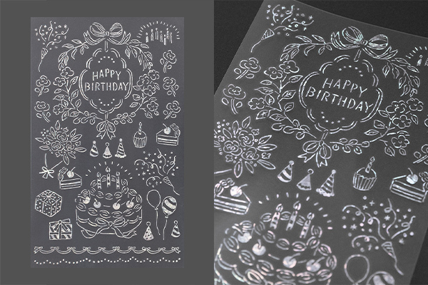 特別選用帶有3D效果的銀箔製作而成,圖案的光芒會隨著觀看的角度有所不同,就連細節圖案都會閃閃發亮,非常適合用於傳達祝福或感謝等場合。