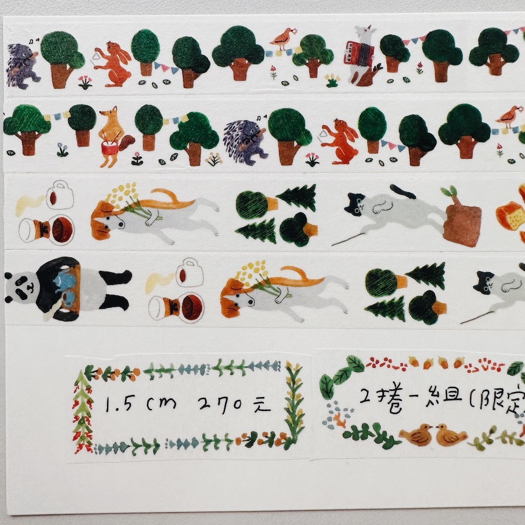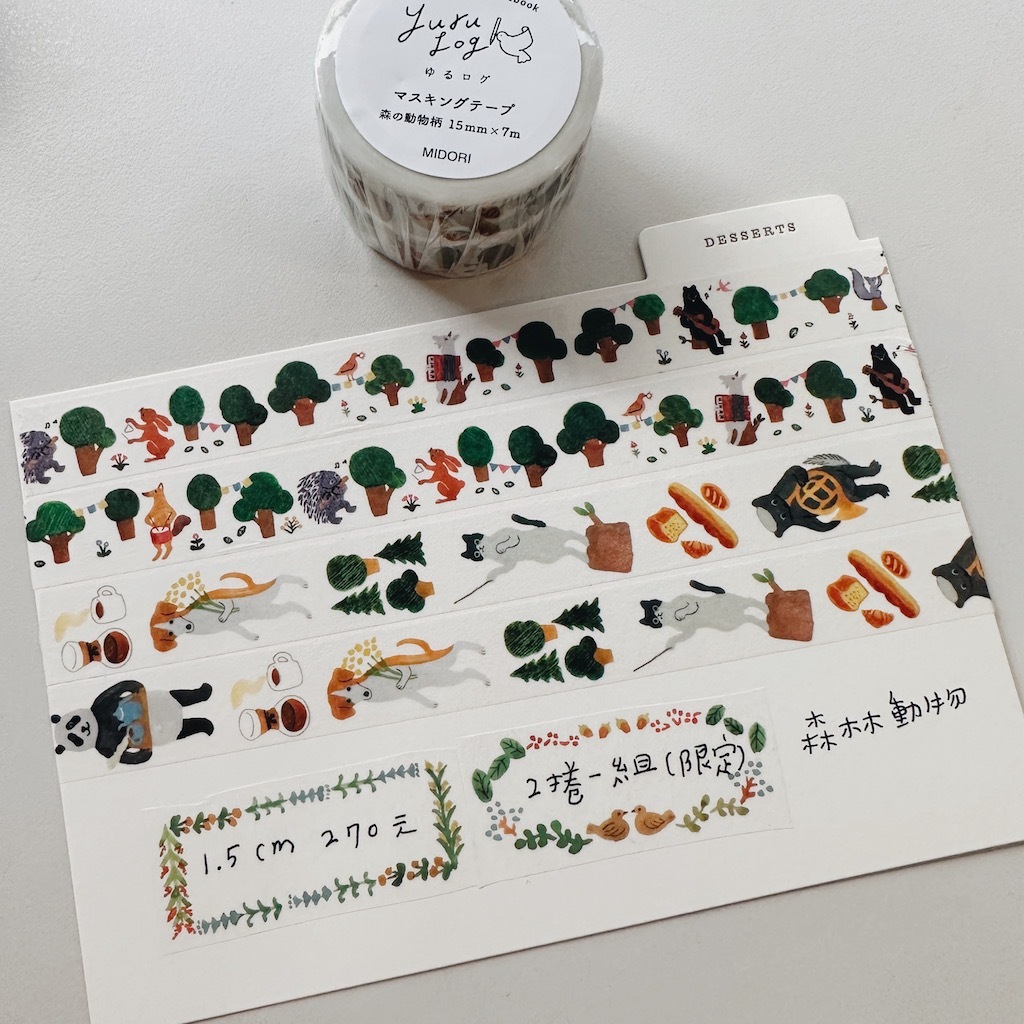 森の動物 2入 15mm和紙膠帶 Yuru Log特展限定|日本Midori