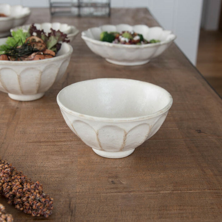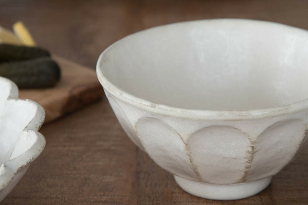 碗身的陶器紋理手感佳,容易與其他餐具搭配,簡單營造質感豐富的餐桌風景。