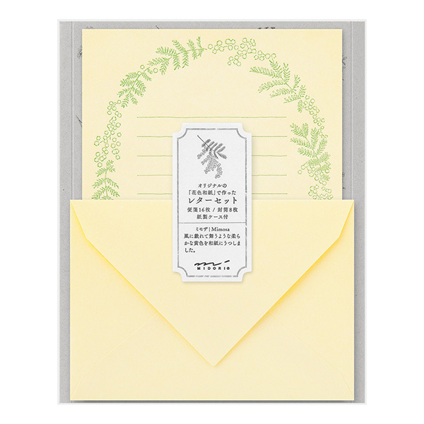 黃色 花色和紙 信紙信封組(附收納紙盒)|日本Midori