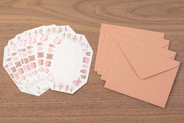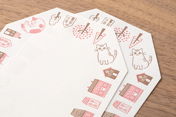 不拘於長方形的便箋,以各種不同的輪廓外形,搭配活版印刷的溫和風格設計,予人輕鬆印象的「造型信紙組」。