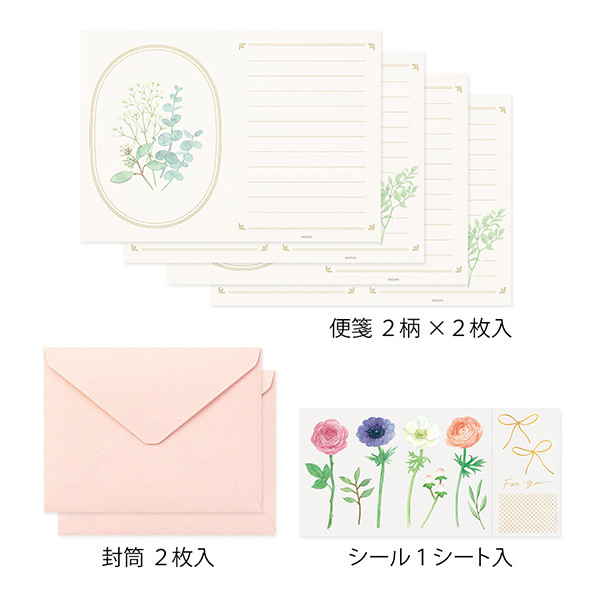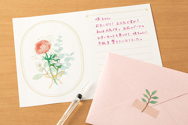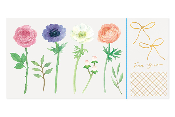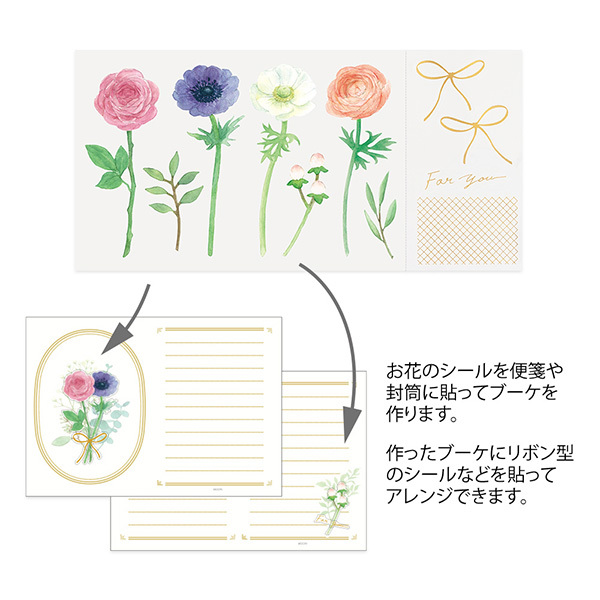 內附花卉貼紙的『貼紙信紙組』,搭配花卉貼紙,宛如隨信附上一捧花束,以花束致上話語以外的心意,為信文增添美好至極的心意。