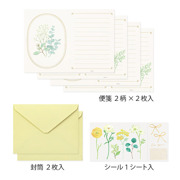 MIDORI 灰卉貼紙信紙組 綠色花束