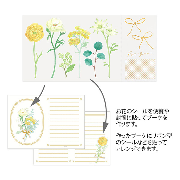 內附花卉貼紙的『貼紙信紙組』,搭配花卉貼紙,宛如隨信附上一捧花束,以花束致上話語以外的心意,為信文增添美好至極的心意。