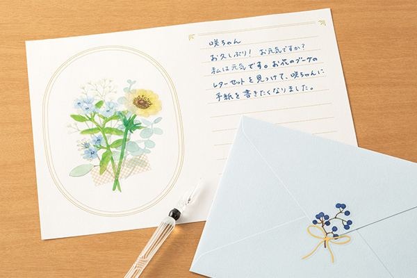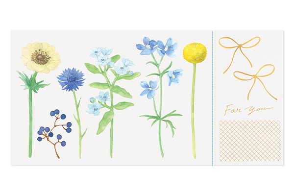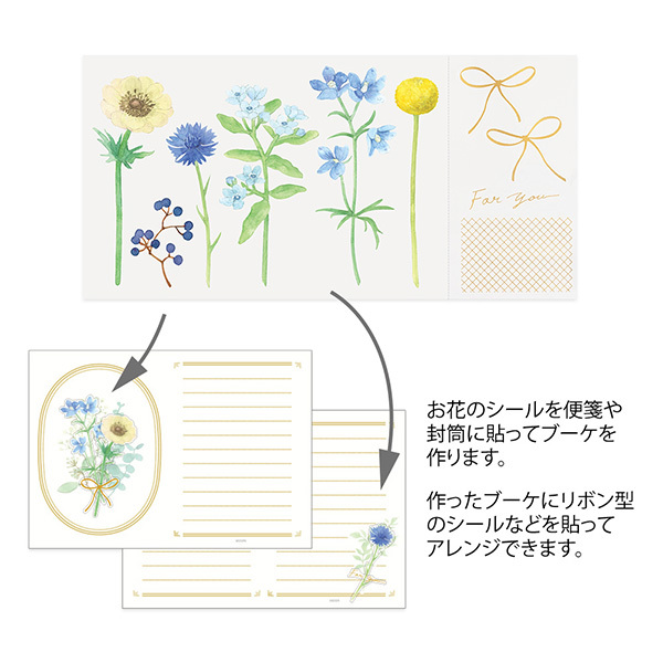 內附花卉貼紙的『貼紙信紙組』,搭配花卉貼紙,宛如隨信附上一捧花束,以花束致上話語以外的心意,為信文增添美好至極的心意。