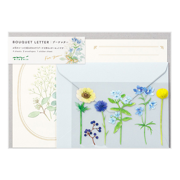 MIDORI 灰卉貼紙信紙組 藍色花束