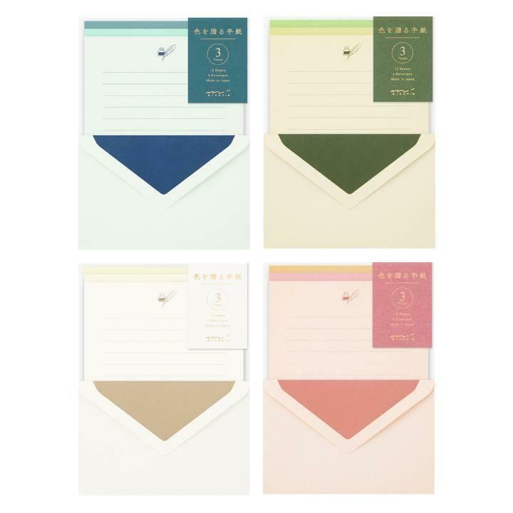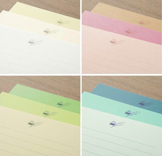 每一色款皆以3種同色系不同色調的紙張搭配成組,讓寄信人可從中挑選最能表達心情的顏色。