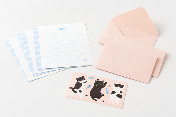 貓咪 貪吃動物 迷你 信紙信封組附貼紙|日本MIDORI