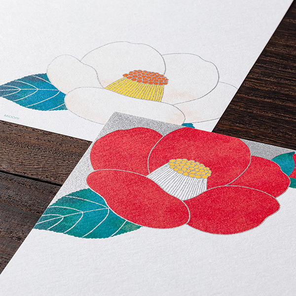 紅白山茶 越前和紙 16枚便箋 JAPANWORKS|日本MIDORI
