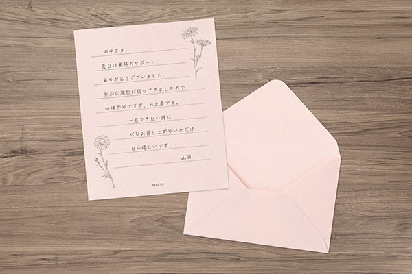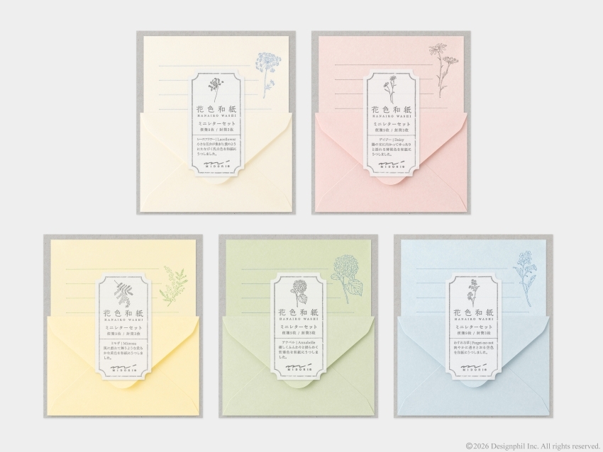 這款迷你信紙組採用 MIDORI 在越前開發的日本和紙製作,柔和的花卉色彩充滿溫暖感。