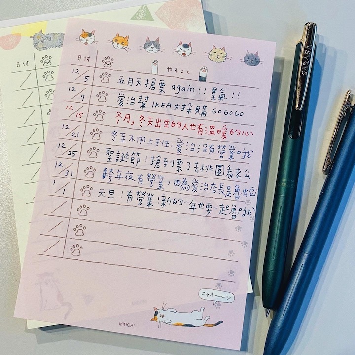 貓咪 80枚備忘錄 待辦清單|日本MIDORI