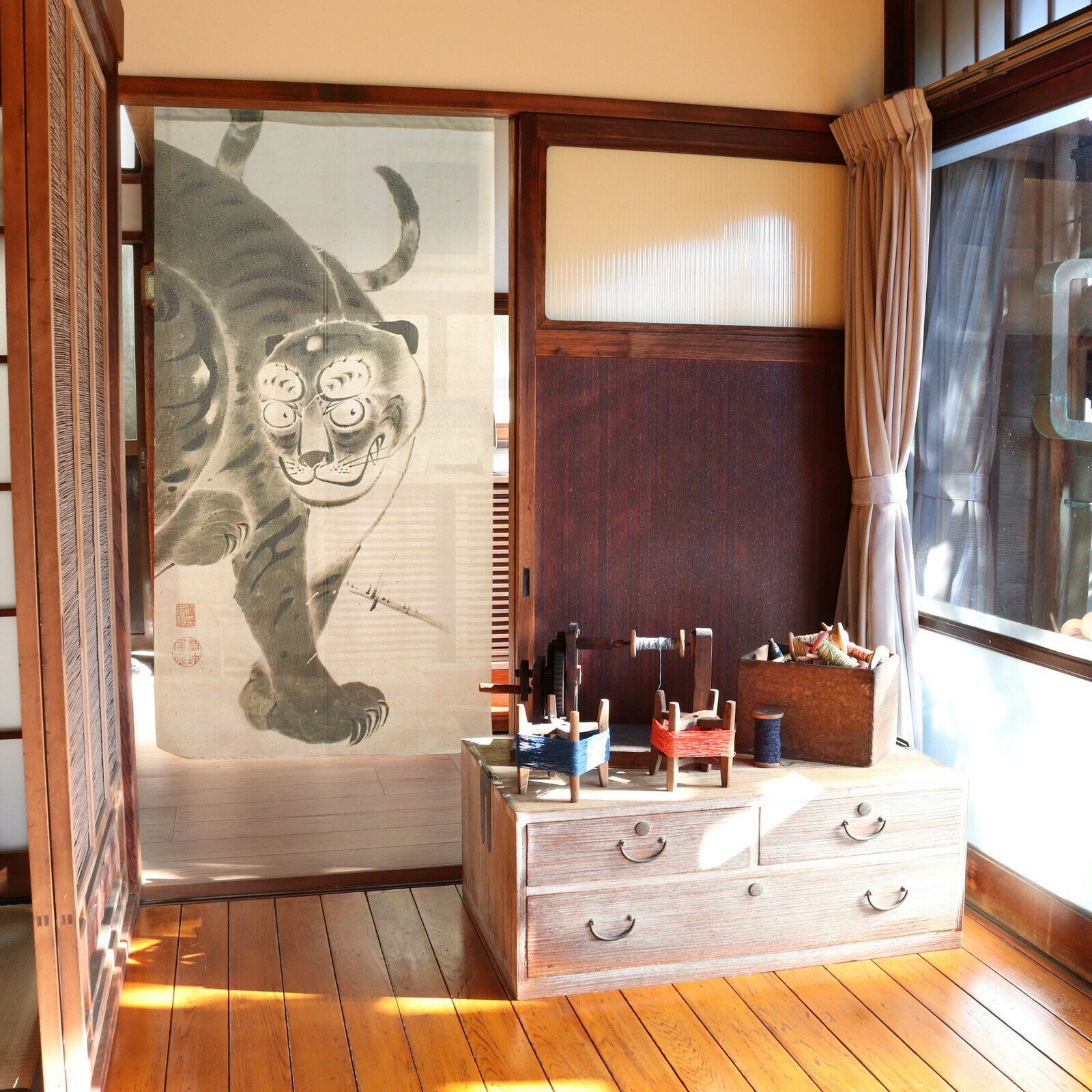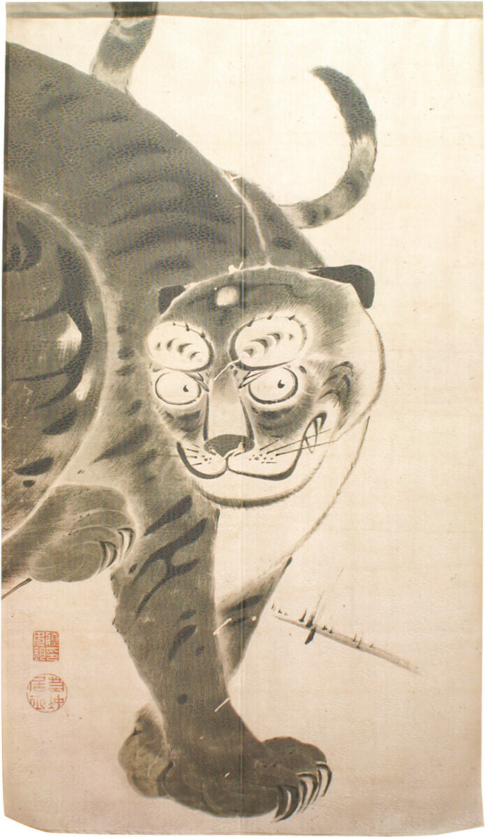 伊藤若沖 虎圖 長暖簾 門簾 150cm|日本製 のれん工房