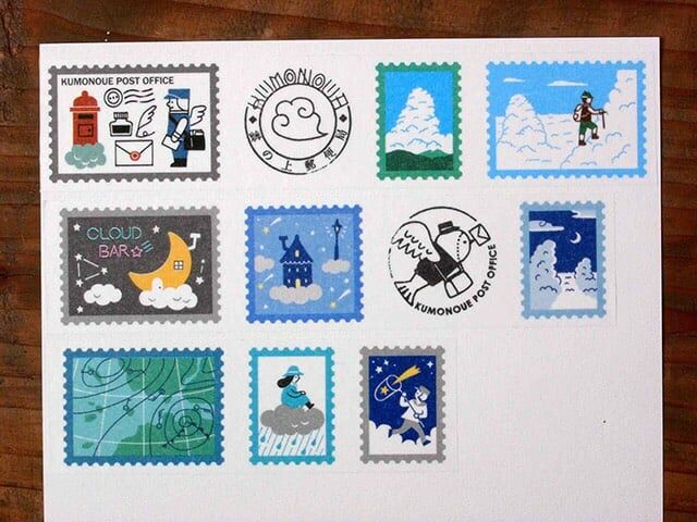 以雲上的郵便局為概念,將紙膠帶的插畫以一張一張的郵票呈現。