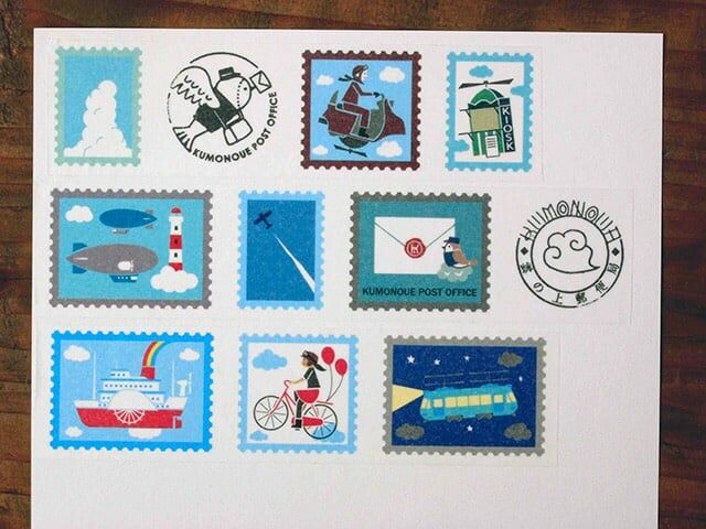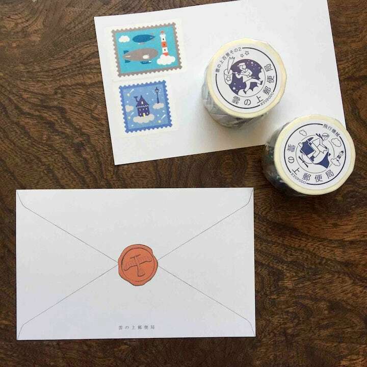 以雲上的郵便局為概念,將紙膠帶的插畫以一張一張的郵票呈現。