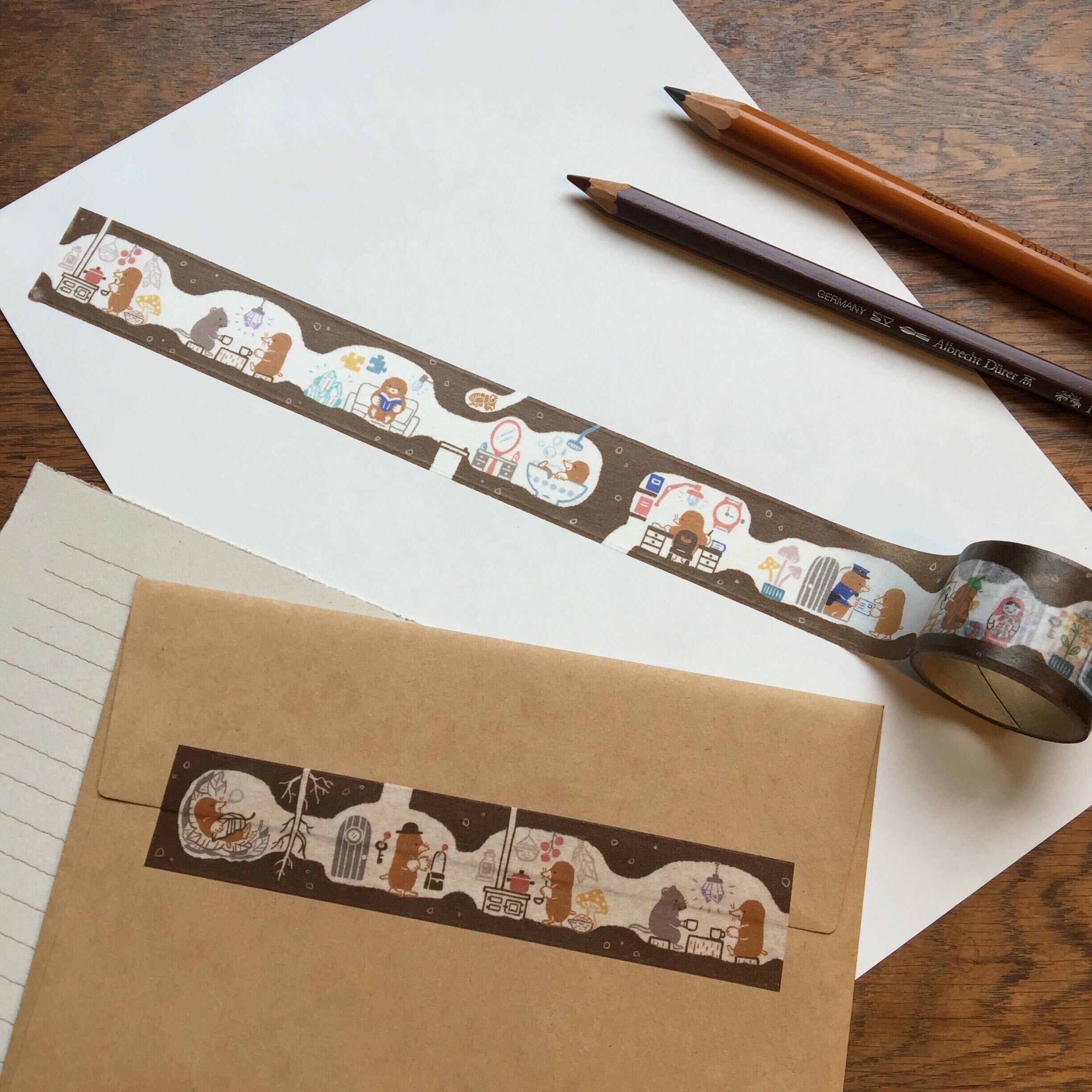 這是一款以鼴鼠郵局郵票和鼴鼠郵差為主題的和紙膠帶。