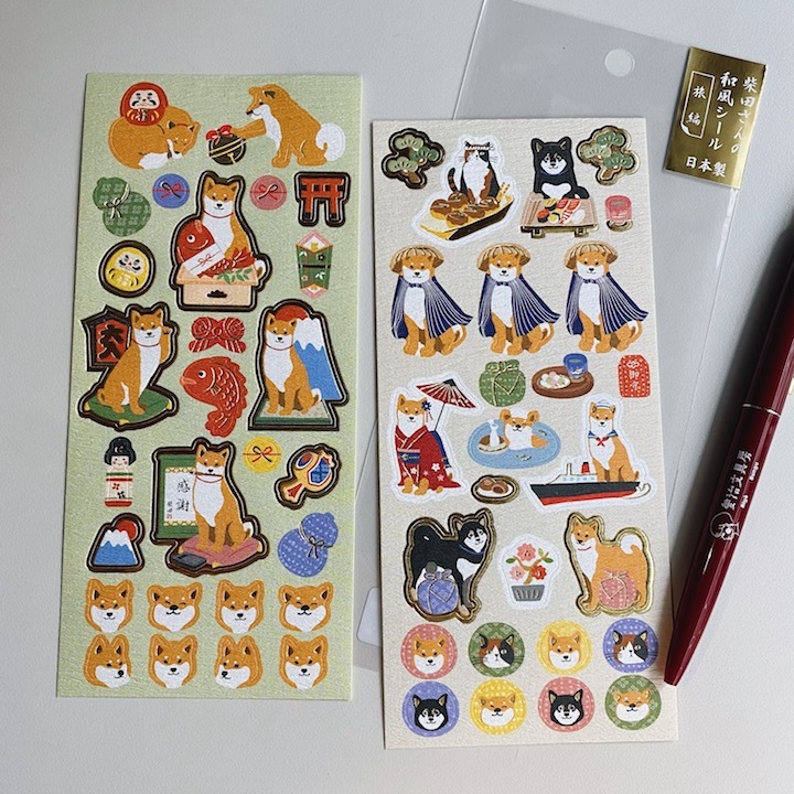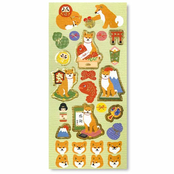 柴田先生與吉祥物 柴犬金箔貼紙|日本ACTIVE CORPORATION