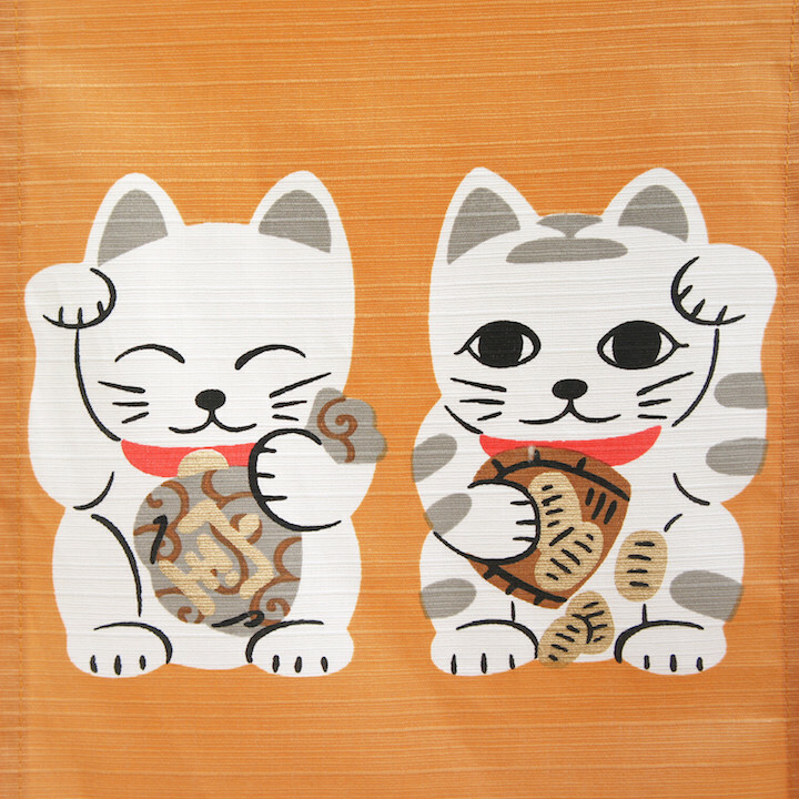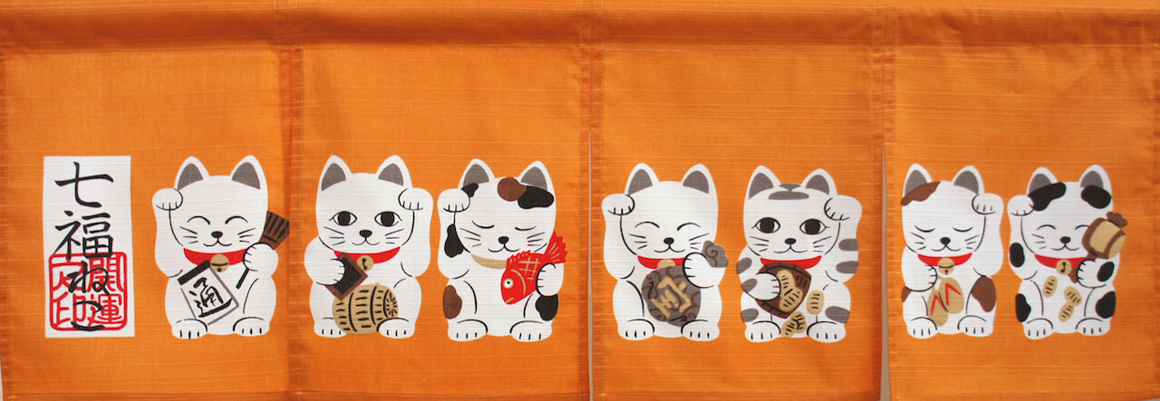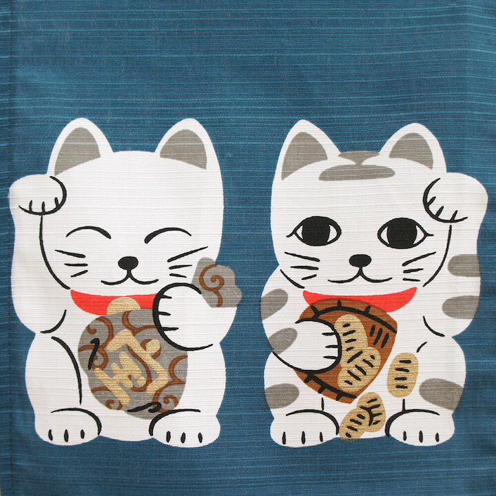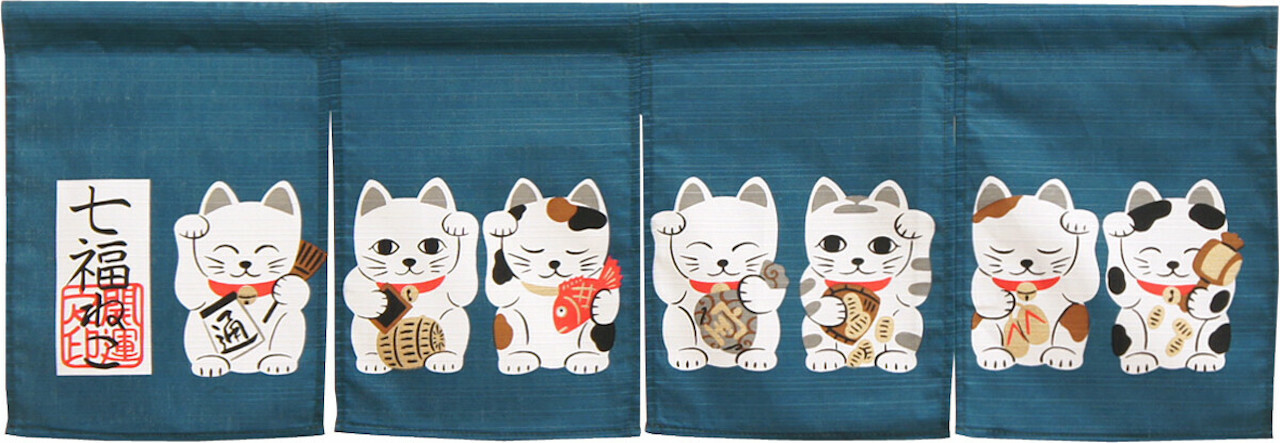 七福貓 短門簾 純棉門簾 30cm|日本製 のれん工房