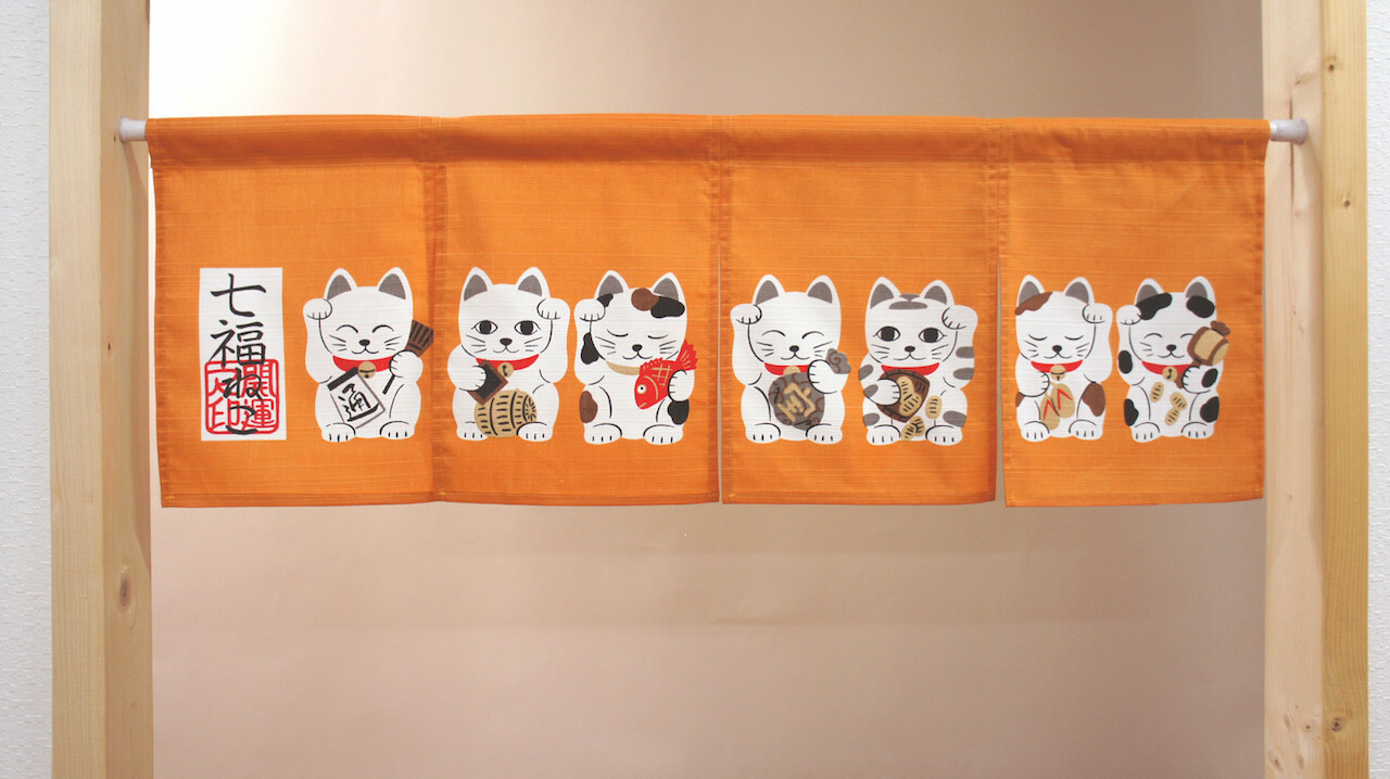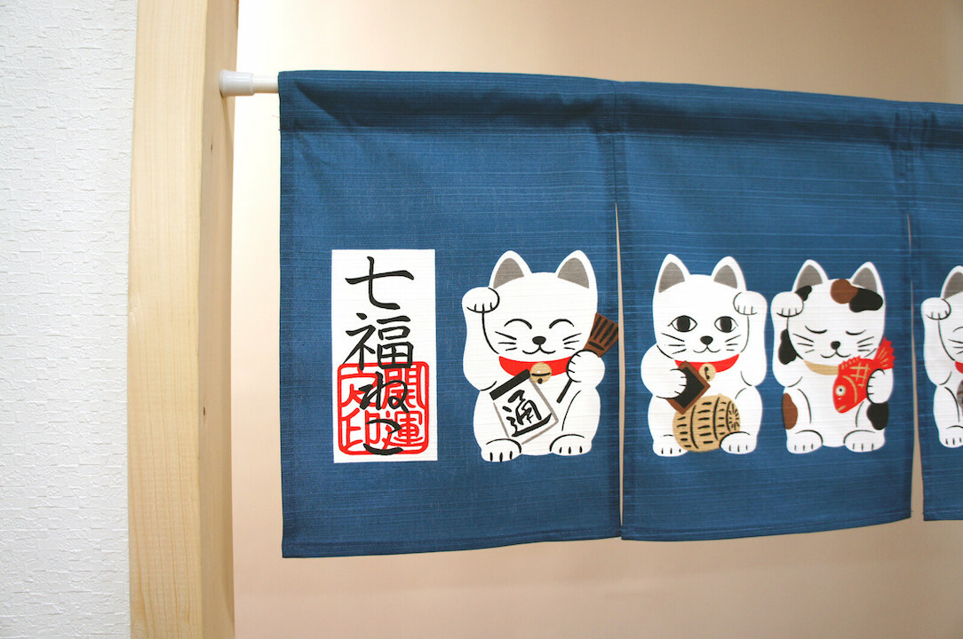 印有日本吉祥物招財貓的門簾,只要裝飾一下就會讓人心情愉悅。