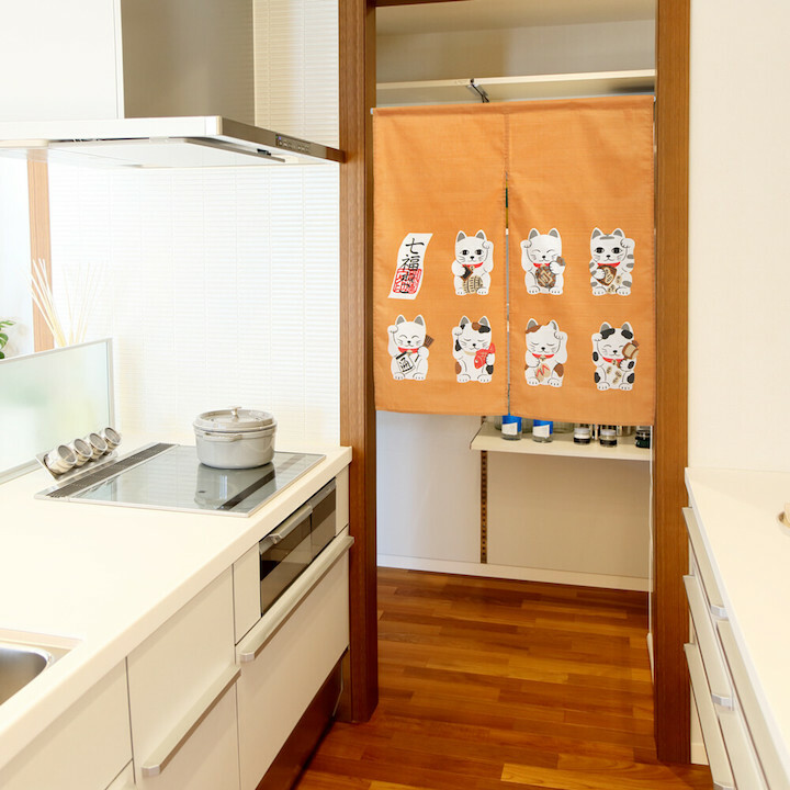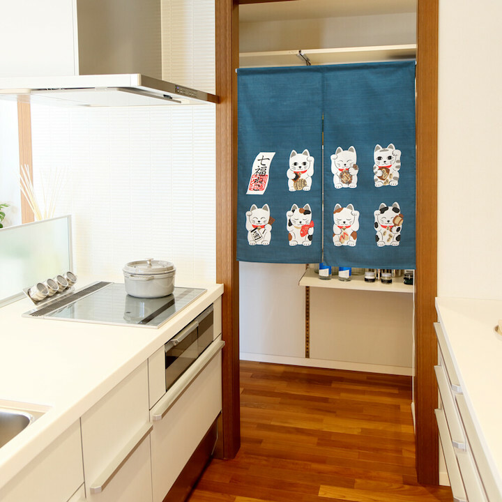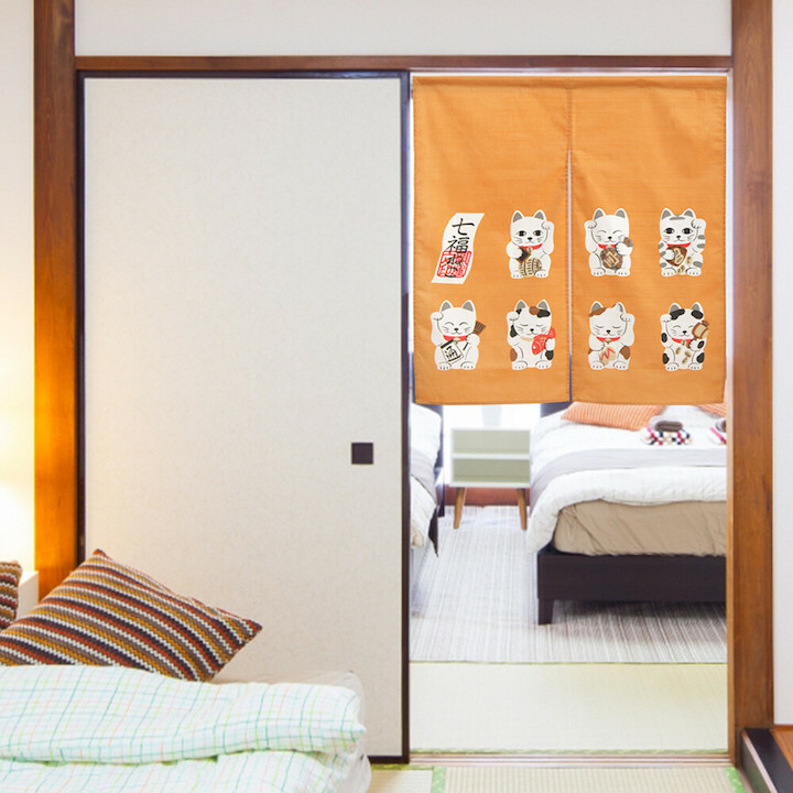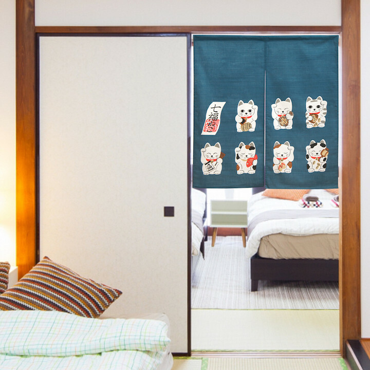 印有日本吉祥物招財貓的門簾,只要裝飾一下就會讓人心情愉悅。