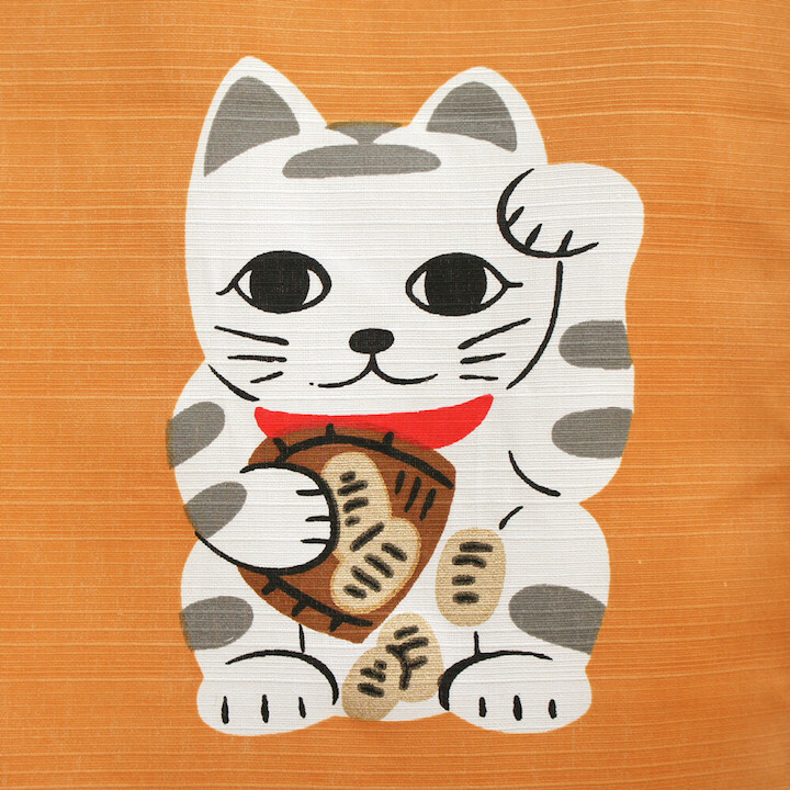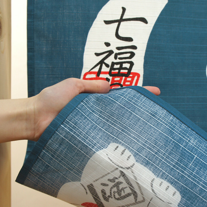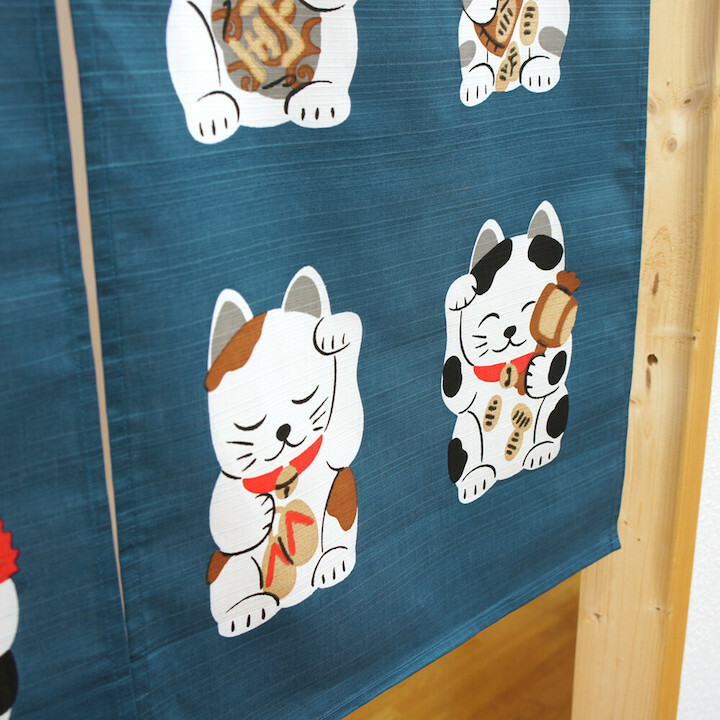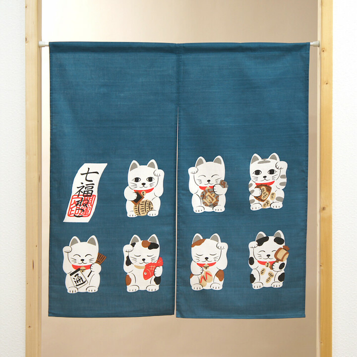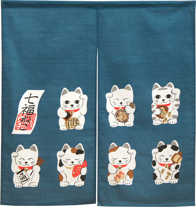 七福貓 長暖簾 純棉門簾 90cm|日本製 のれん工房