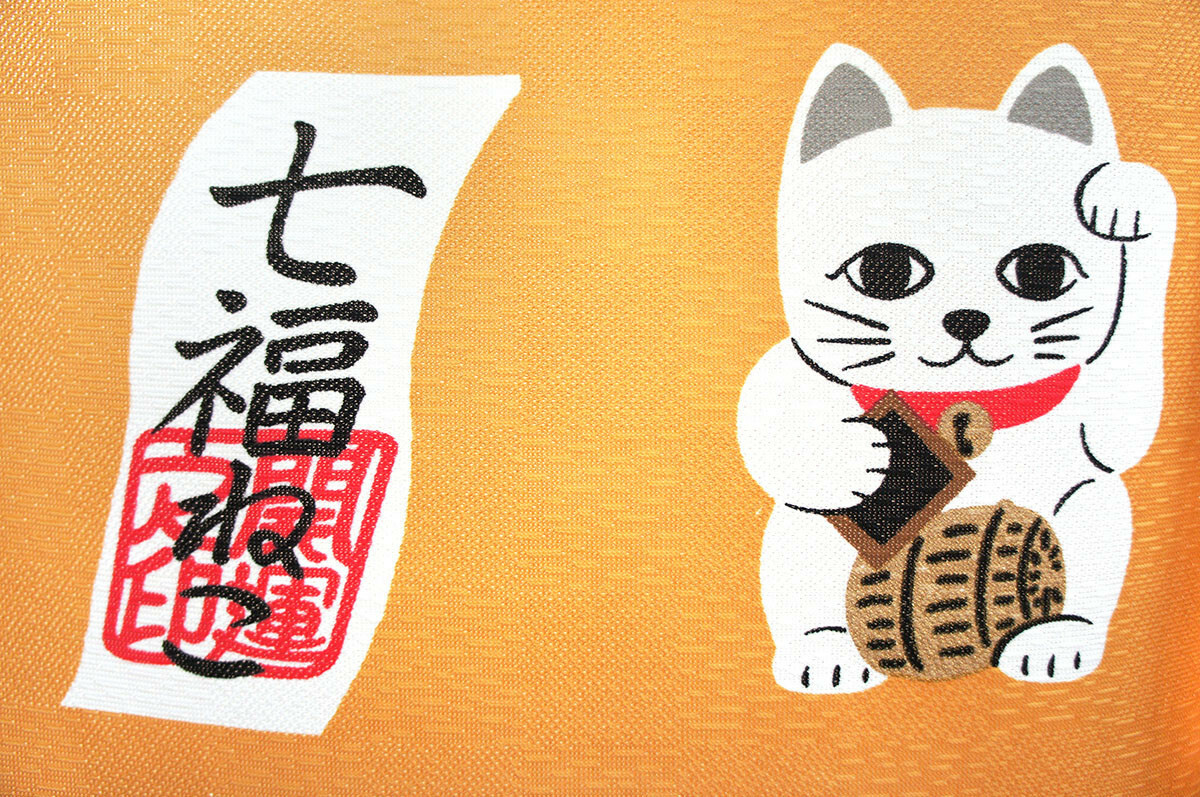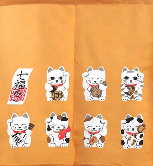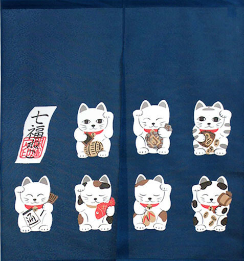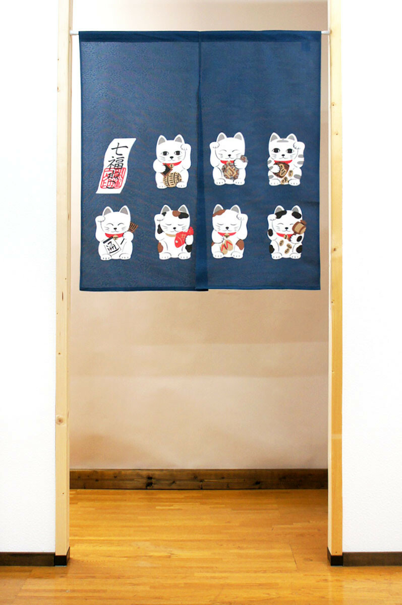 七福貓 長暖簾 門簾(此為聚酯材質) 90cm|日本製 のれん工房