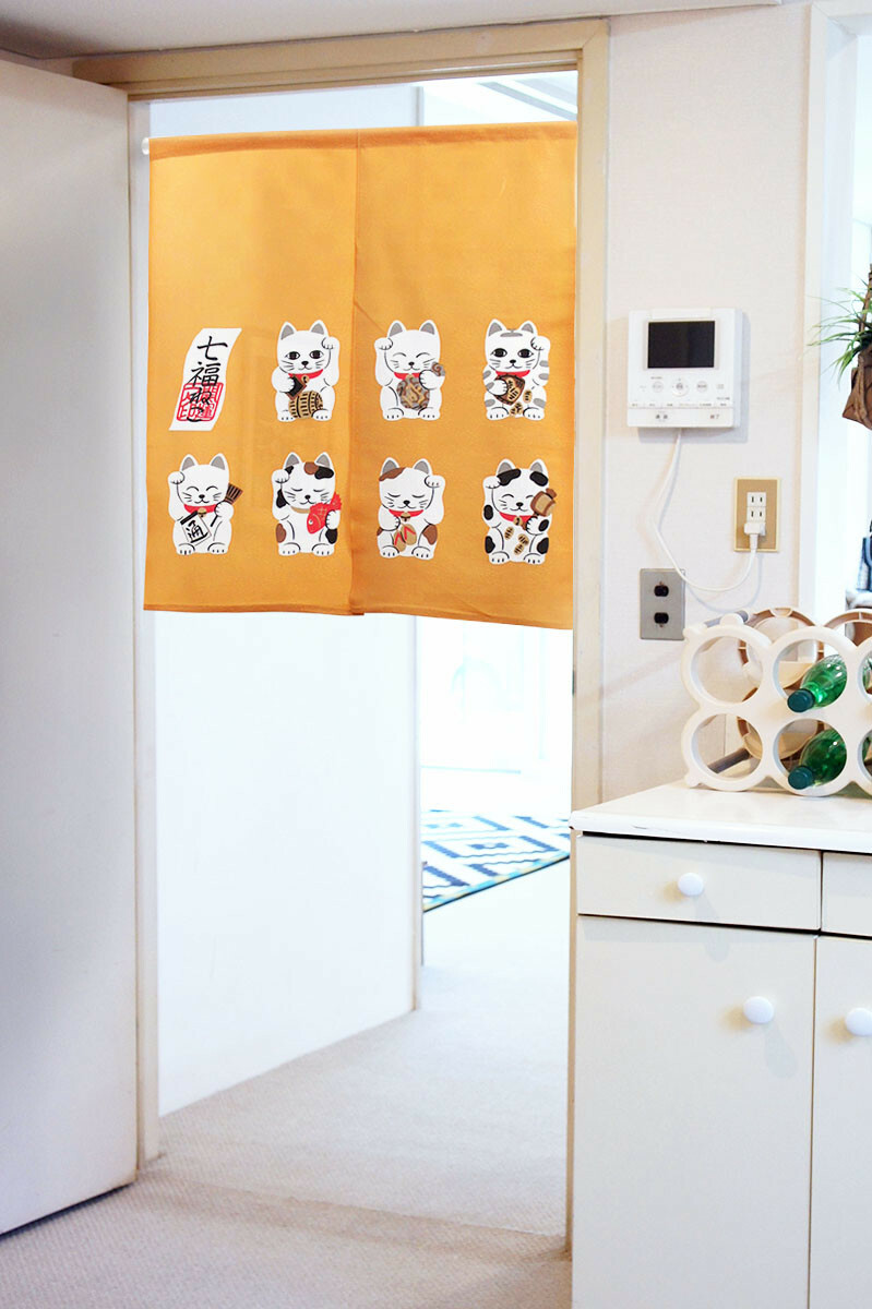 印有日本吉祥物招財貓的門簾,只要裝飾一下就會讓人心情愉悅。