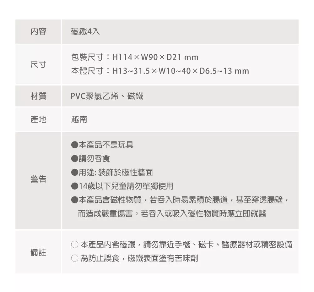 可愛立體造型磁鐵,內附超強力磁石,觀賞性與實用性兼具。